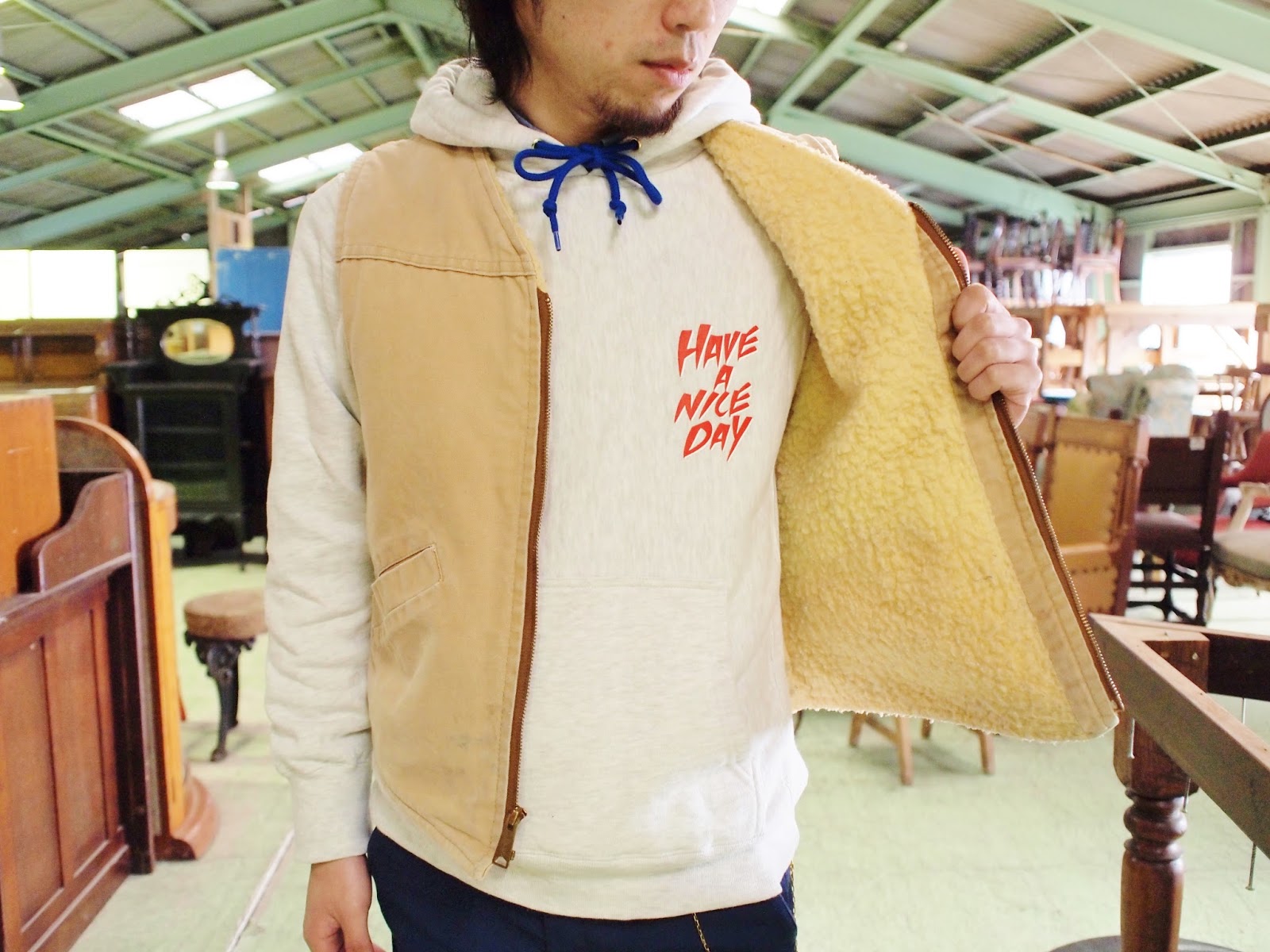 ”HAVE A NICE DAY” Heavy Weight Pull Over Hoodie(オートミール)